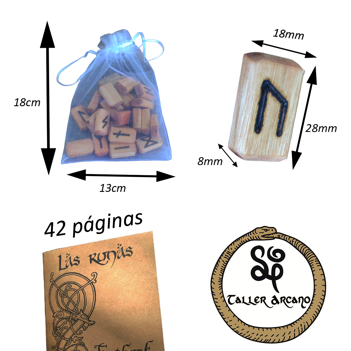 Set de 25 runas artesanales de madera de eucalipto, pirograbadas a mano y acabadas con aceite de lino de 28mm x 18mm x 8mm