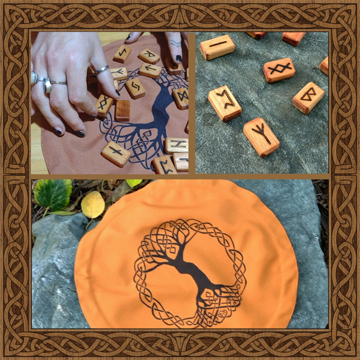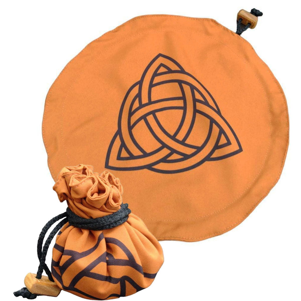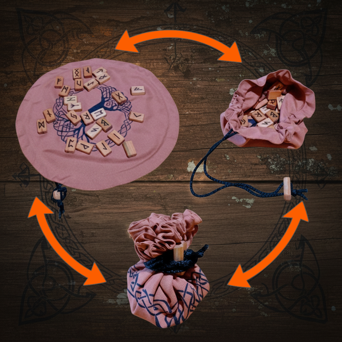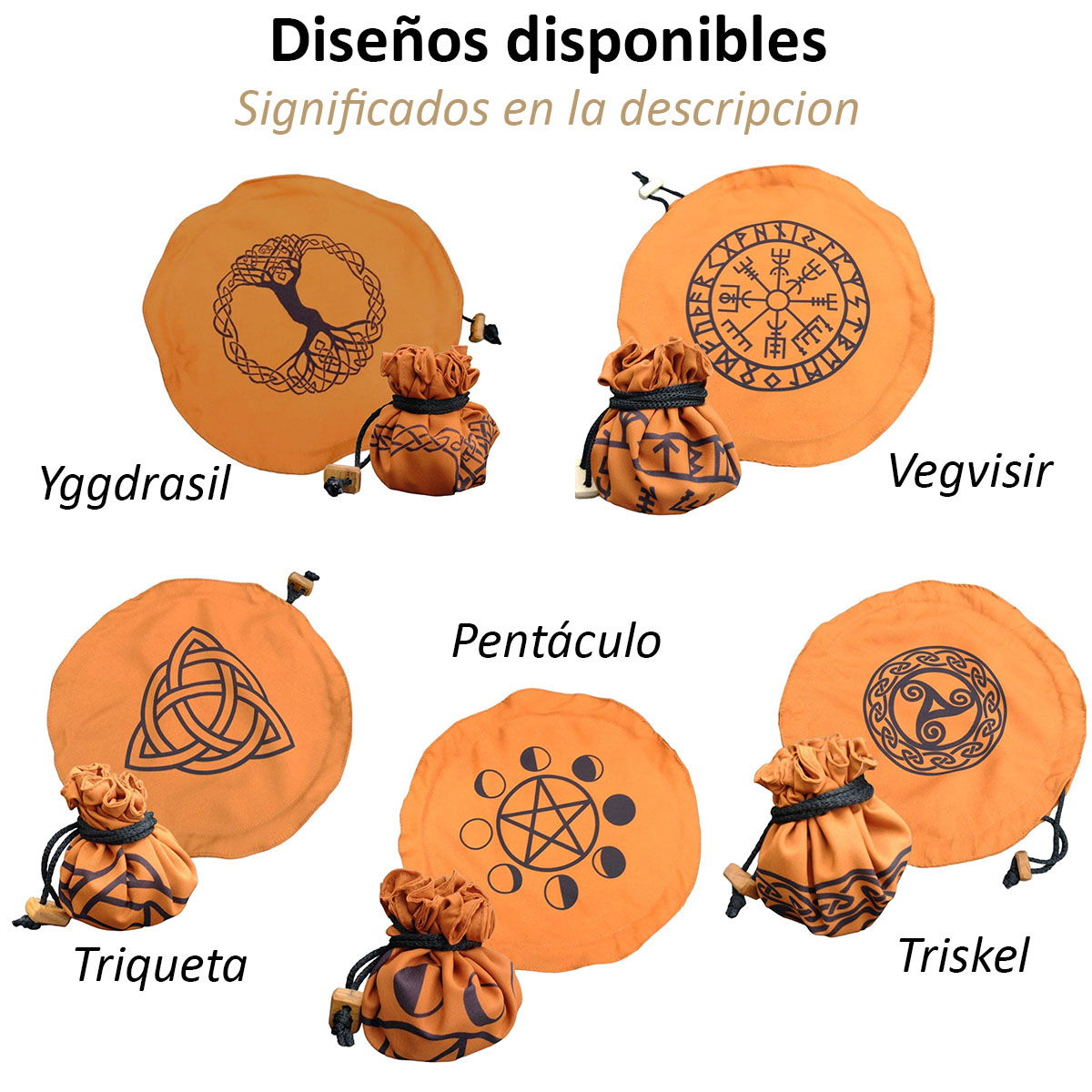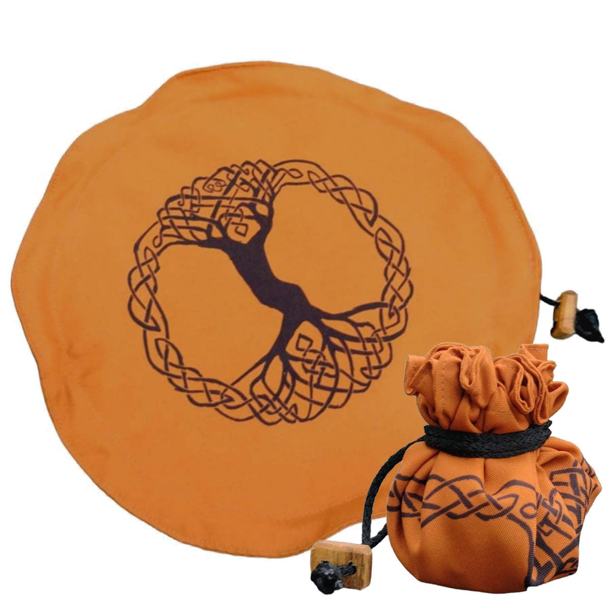 Imagina tener en tus manos un símbolo ancestral, tallado a mano con dedicación en un taller artesanal. Cada pieza es única, cargada de energía y respeto por el mundo antiguo, mientras que su bolsa se transforma en un paño circular de 33 cm y se despliega como un altar personal para tus lecturas.